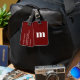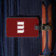 Moderne Kleinschreibung Typografie minimalistisches Monogramm Initialdesign, das in Personalisierung umgewandelt werden kann, zusammen mit den Details auf der Rückseite. Weiß auf bordeauxrotem Hintergrund.