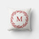 Modern Monogram Initial Red Leaf und Berry Wreath Kissen