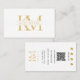 A beautiful white and gold monogram initials design and your QR Code. This elegant business card is ideal for all types of professions. A simple and professional way to introduce your business. Customize the social media icons in this design to suit your business needs. Personalize your details to create your own unique monogrammed business card.