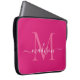 Moderne Monogram Hot Magenta Pink White Girly Chic Script Name Computerärmel