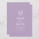 Announce your engagement with these wedding monogram save the date invitations. They feature the bride and groom's monogrammed initials in an elegant crest over a solid lilac color background. Use the template fields to add your personalized text. An elegant choice for weddings and bridal showers. To see the complete wedding invitation suite visit www.zazzle.com/dotellabelle