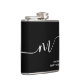 Modern Monogram Script Calligraphy Schwarz-weiß Flachmann
