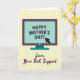 This greeting card features a modern digital-style illustration centered on a simple computer monitor in deep plum, with a bright teal screen that feels like a fresh message shared with care ❤️. Across the screen, uppercase text reads “HAPPY MOTHER’S DAY!” in a rich purple, standing out clearly against the teal. A dark cursor arrow tilts toward the exclamation point, adding a flirty little moment of “just clicked send,” like a quick note from someone who’s always nearby when needed. The background is warm cream with a faint circuit-path pattern, keeping the tech setting gentle rather than busy. Beneath the monitor, a flowing purple line of text says “Love, Your Tech Support,” placed like a signature that hints at an affectionate, familiar bond 👩. The colors stay simple and flat, with crisp shapes that keep the focus on the message and the cozy humor. The cream backdrop shows thin, maze-like circuit lines running behind the plum monitor and teal screen.