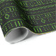 Saytoons Modern Mud Tuch Muster kommen in mehreren nicht traditionellen Farben. Dieses Verpackungspapier ist schwarz mit dem Muster in grün mit gemusterten Streifen in gelborange