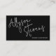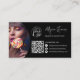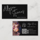 Eine moderne und fett-schminkende Make-up-Künstlerin und Friseur-Visitenkarte mit übergroßen Namen an der Vorderseite in handgeschriebenem Stil Schriftart und Foto, qr-Code und Social Media auf der Rückseite schwarz. Alle Farben sind bearbeitbar.