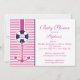 Moderne Nautical Anchor Baby Shower Invitation mit einem blauen und rosa AnkerSet auf einem rosa und weißen Streifen Hintergrund. Ideal für ein Baby. Mädchendusche. Besuchen Sie unseren Shop, um unsere große Auswahl an nautischen Segelboote Baby zu sehen. Duscheinladungen. ©Blackleaf Designs