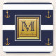 Modern Nautical Anchor Blue White Gold Monogram Rechteckiger Pappuntersetzer