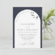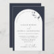 Modern Navy Blue Arch Botanical Script Wedding Inv Einladung