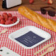 Modern Navy Blue Cross Boy First Communion Pappteller