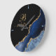 Modern Navy Blue Gold Agate Geode Monogram Große Wanduhr