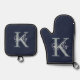 Modern Navy Blue Monogram Script Ofenhandschuh & Topflappen-Set