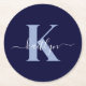 Modern Navy Blue Script Monogram Runder Pappuntersetzer