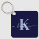 Modern Navy Blue Script Monogram Schlüsselanhänger