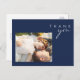 Modern Navy Blue | Silver Script Foto Vielen Dank Postkarte