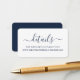 Modern Navy Blue & White Simple Script Details Begleitkarte