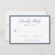 This wedding RSVP card features elegant navy calligraphy script at the top, paired with classic serif lettering and space for your desired wedding response date. A navy border frames the design, creating a refined and timeless look that feels polished without being overly formal. The structured layout offers a sophisticated way for guests to reply, making this RSVP card well-suited for traditional, modern, and classic wedding celebrations. Personalize the wording to create a response card that feels intentional and thoughtfully designed.