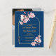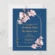Elegant Navy Blue Magnolia Photo Back Wedding Invitation with Gold Arch .