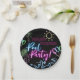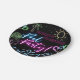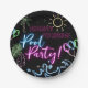 Modern Neon Glow Black Pool Party Birthday Paper Plates