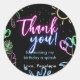 Modern Neon Glow Black Pool Party Thank you Classic Round Sticker