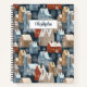 Der Name und das Monogramm-Notizbuch sind individuell anpassbar und zeichnen sich durch das moderne nordische Muster von skurrilen, handbemalten Häusern und schneebedeckten Bäumen in der Winternacht in den Farben Blau, Rot, Weiß und Beige aus.