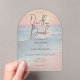 Celebrate your special day with the simplicity and tranquility of a transparent acrylic watercolor beach scene wedding invitation that invites your guests to join your celebration, "on the beach". The soft, warm coral and blush hues of the sunset compliment the aqua and blues of the peaceful sea, making this design perfect for your beachside or destination wedding. Created by Simply Farmhouse Press.
