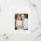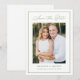 Announce your wedding with this modern photo save the date featuring an olive green script and a matching border that frames the design. Your vertical photo is displayed at the center, with your names, wedding date, and location shown below in classic lettering. The layout is simple and well-balanced, making it easy to personalize while keeping a polished look. A great choice for outdoor weddings, garden weddings, and couples looking for a minimal design with a subtle touch of color. The back is blank with space to add additional photos or details.