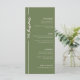 Eine moderne und elegante Olivgrün Hochzeitskarte. Passen Sie Ihre Hochzeitsmenüpunkte an, Ihre Namen und Ihr Hochzeitsdatum am Ende der Karte.