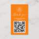 Modern Orange QR Code Order Vielen Dank Visitenkarte