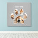 Zeigen Sie Ihre Liebe für Ihr Haustier mit diesem niedlichen und einfachen, individuellen Foto-Collage-Design auf diesem gewickelten Leinwand-Druck mit dem Namen Ihres Haustieres zusammen mit fünf Fotos Ihres Haustieres in einem Pfotendruck, der auf einem silbergrauen Hintergrund in Weiß umrissen ist.
