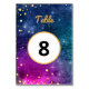 Pfau färbt Hochzeitsdinner Empfang Tischnummer Karte. Modernes Pfauenblau und goldenes Aquarelldesign für Ihre Hochzeitssuite, Hochzeitseinladung. Trendy Pfauenfarben mit goldenen Punktakzenten Design für das moderne Paar. Passen Sie Ihre Informationen und Nachrichten und die Paarnamen an. Großartiges Design aus TLS Designs.