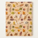 Modern big stylish letters in white. Trend cozy autumn pattern in beige, brown and orange.