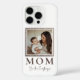 Protect your phone with a meaningful touch using this modern personalized mom photo phone case. Designed with a clean and elegant layout, it features your custom photo framed in a refined film-style border, paired with bold “MOM” typography and a delicate handwritten message.