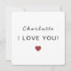 A modern personalized Valentine card featuring a handwritten name, the timeless message “I Love You,” and a minimal heart accent. Designed with a clean, elegant aesthetic, this card is perfect for expressing love on Valentine’s Day, anniversaries, or meaningful everyday moments. A simple yet heartfelt keepsake for someone special who appreciates modern design.