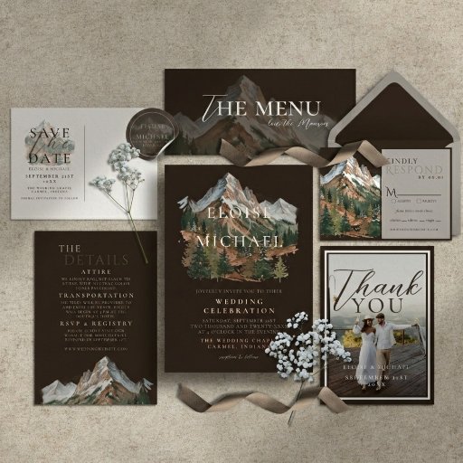 Rustic Brown Watercolor Mountain Landscape WeddingDesignt von Molly H
