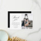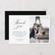 A simple black and white wedding thank you card template with a photo and a personalised thank you message to your guests.