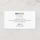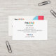 Minimal modern photography studio business card with clean layout and colorful geometric accent.