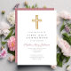 Modern Pink Cross Religious Girl First Communion Einladung
