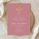 Modern Pink Cross Religious Girl First Communion Einladung