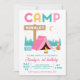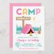 Modern Pink Girls Camping Geburtstag Einladung
