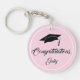 Einfache und moderne Pink Herzlichen Glückwunsch Abschluss Schlüsselanhänger mit einem Graduiertennamen, Graduierungsmütze, moderne weiße Typografie Herzlichen Glückwunsch auf Rosa. Personalisieren Sie sich mit Ihrem Namen.