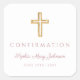 Modern Pink Religious Cross Boy Confirmation Square Sticker.