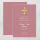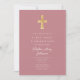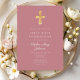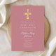 Modern Pink Religious Cross Girl First Communion Einladung