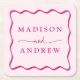 Add a stylish touch to your wedding reception, rehearsal dinner, engagement party, or wedding shower with these Modern Pink Wavy Frame paper coasters. The retro wedding coasters display the couple's names in bold pink lettering surrounded by a pink wavy border contrasting with a light pink background. The trendy wedding coasters were designed to coordinate with our Modern Wavy Frame wedding collection.