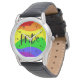 Uhr, Klassische Damenuhr mit schwarzen Lederarmband