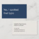 A modern, minimalist business card perfect for freelance proofreaders. The front features a dark blue background with the apt phrase "Yes, I spotted that typo" in off-white text. The reverse has an off-white background with dark charcoal grey text and space for your contact details. All text on the card is fully editable.