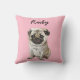 Cute and trendy customized Pug Illustration pillow for Dog Lovers and Pet Lovers. Customize with name and your pet's photo (or keep as is for Pug lovers). A great personalized gift for friends, family, Dog Mom and Dog Dad. Funny gift for him, for her and your besties. Please don't hesitate to contact me for any questions or special breed request. Happy to create a personalized digital illustration of your pet. ©Marisu Valencia