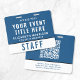Create a polished, professional presentation with these custom blue event access pass badges, designed to combine clear identification, branding, and modern QR functionality. Featuring a bold, easy-to-read layout, this badge highlights your event title and staff or VIP name and their details for instant recognition. The back includes a large scannable QR code, making it ideal for check-ins, schedules, digital tickets, credentials, or secure access control. Perfect for conferences, corporate events, festivals, and productions.