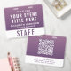 Elevate your event with this access pass badge, designed to bring a refined, modern, and slightly romantic touch to your event credentials. Featuring a rich deep plum purple to soft mauve gradient, this badge delivers a premium look while maintaining excellent readability. The clean layout highlights your event title, team member name, and role, with a bold “STAFF” (or VIP, CREW, VENDOR, etc.) designation for instant recognition. On the reverse, a large scannable QR code allows for seamless check-ins, schedules, digital credentials, or contact sharing -- making this badge both stylish and highly functional. Perfect for weddings and upscale celebrations, creative industry events, boutique brands, luxury experiences, trade shows, and conferences with a modern aesthetic.
