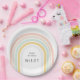Modernes Regenbogen-, Sonne- und Wolkendesign in Pastellfarben von Shelby Allison. Personalisieren Sie diesen Aufkleber mit Ihren Daten und Foto.