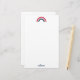 Diese personalisierten modernen und skurrilen Regenbogen-Mitteilungskarten mit einem pulsierenden Regenbogen in Korallen, Rosa, aquamarin und Blau und einem Namen in einem Skript-Schriftart senden ein Lächeln, wohin sie auch gehen. Teil einer Sammlung von Parcel Studios.